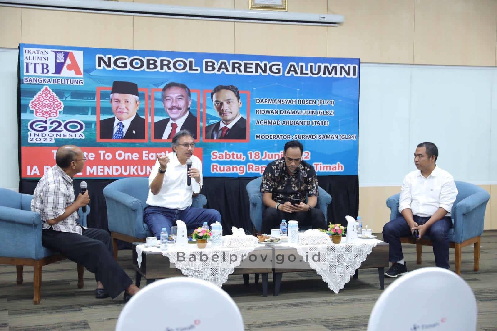 PANGKALPINANG - Dalam acara Ngobrol Bareng Alumni "Tribute to One Earth: IA Babel Mendukung G20", Penjabat (Pj) Gubernur Kepulauan Bangka Belitung (Kep. Babel) Ridwan Djamaluddin, mengungkapkan salah satu keinginannya untuk Babel mengenai even internasional, The Group of Twenty (G20), pada September mendatang di Pulau Belitung.